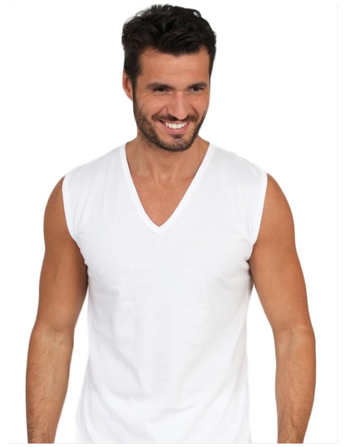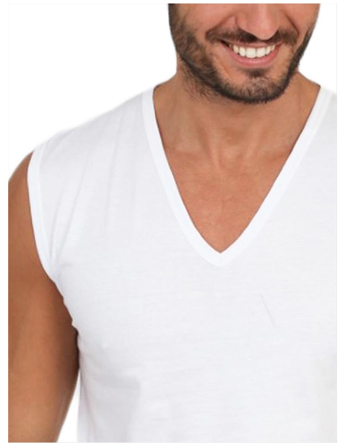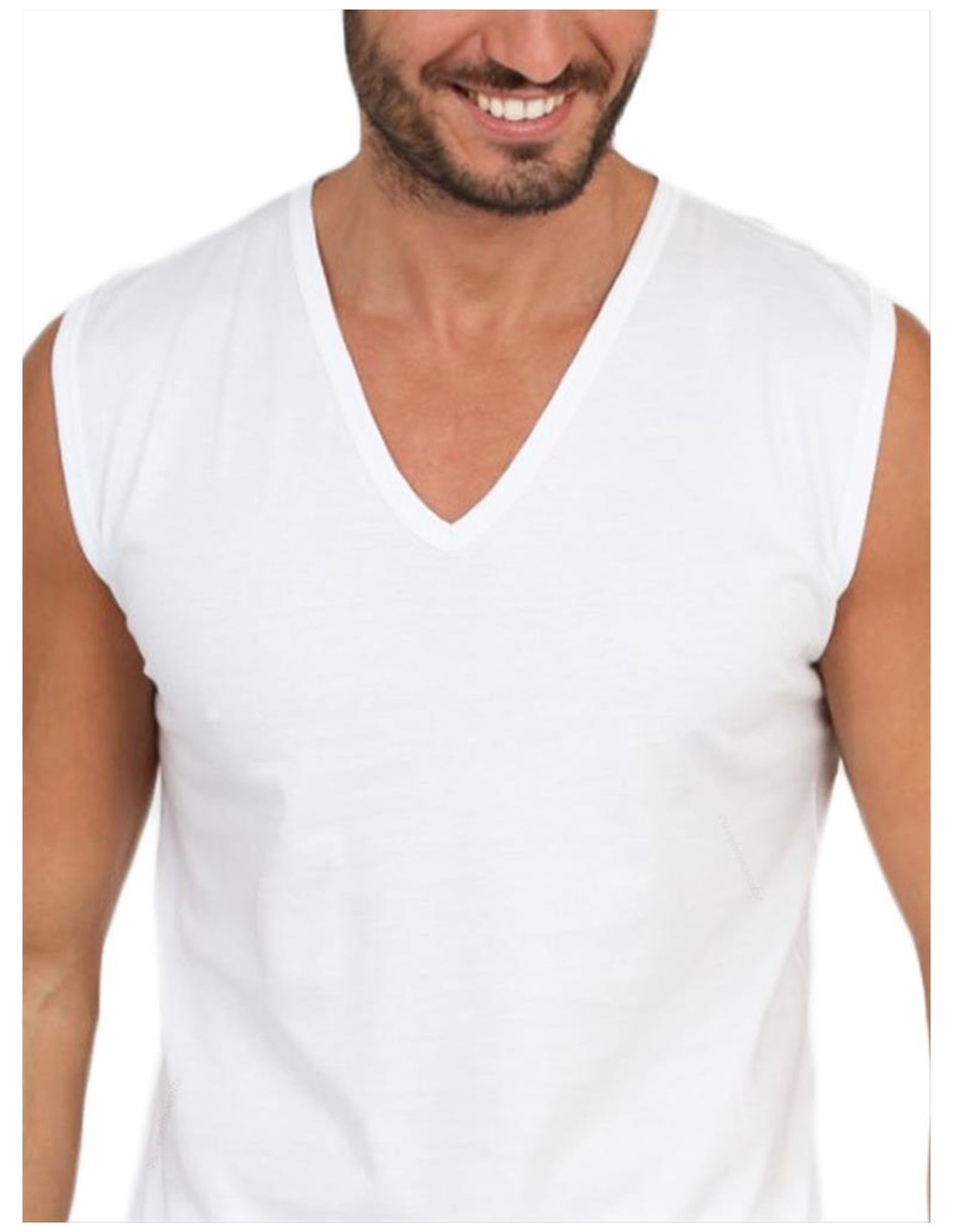 Smanicato Uomo Scollo a V Profondo 100% Cotone, MaRe 351