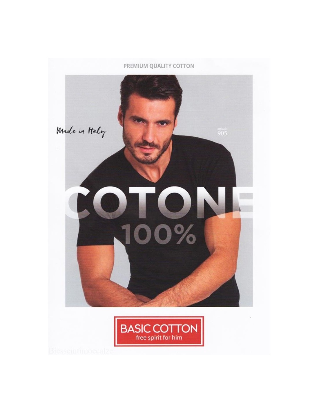T-Shirt Uomo a V 100% Cotone Manica Corta, Basic Cotton 905