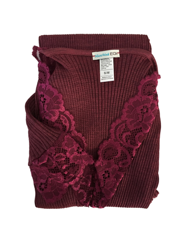 Maglia Donna Manica Lunga a Costina in Lana Merinos e Microfibra con Scollo a V e Polsini in Pizzo - EGI 303