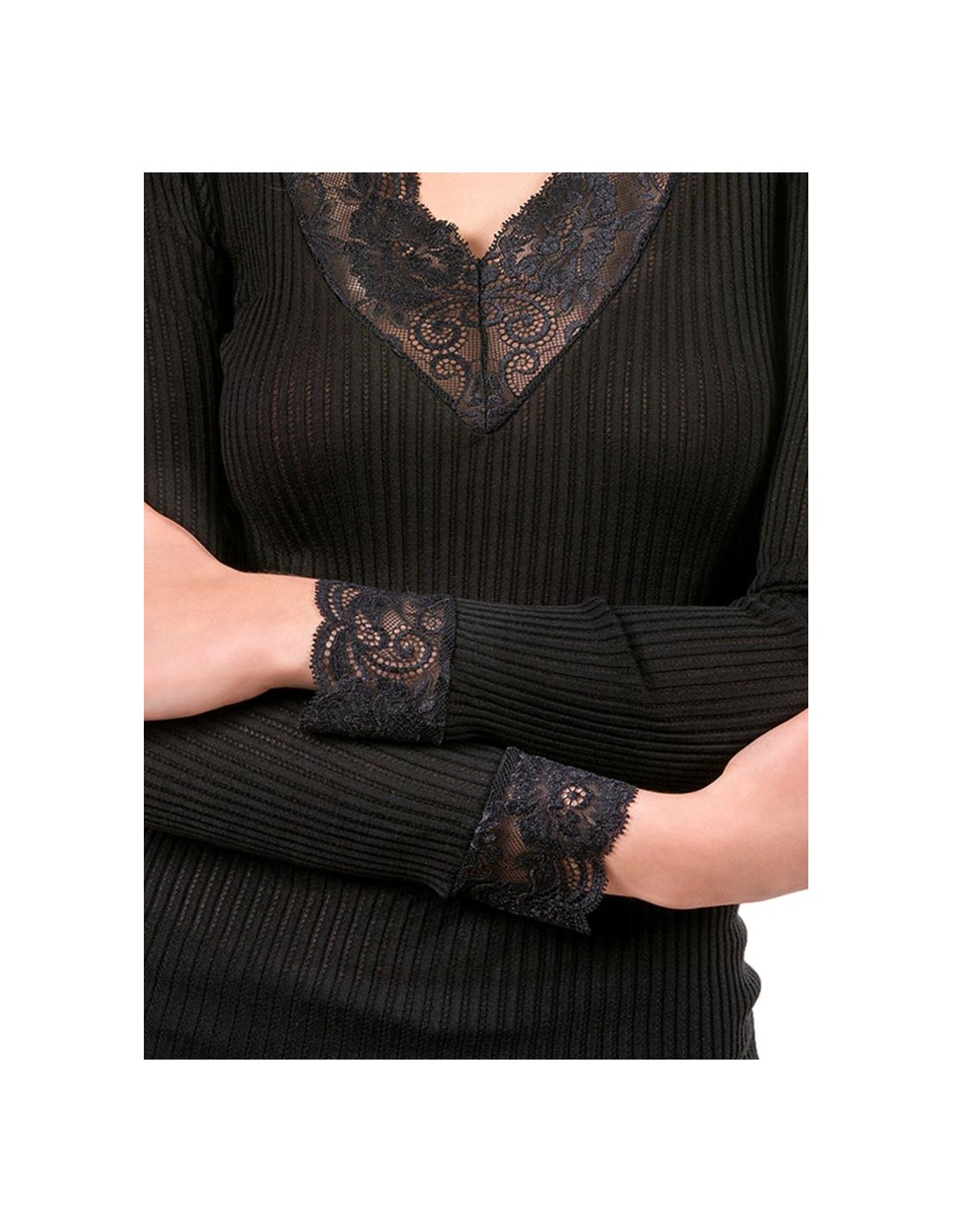 design raffinato arricchito da polsini in pizzo e uno