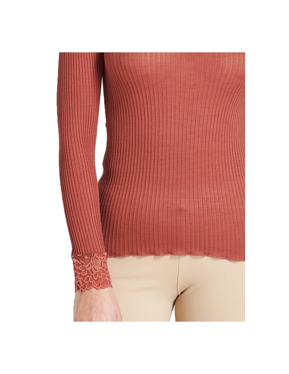 Maglia Donna Manica Lunga a Costina in Lana Merinos e Microfibra con Scollo