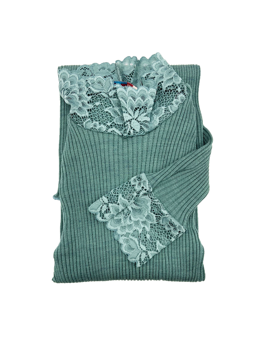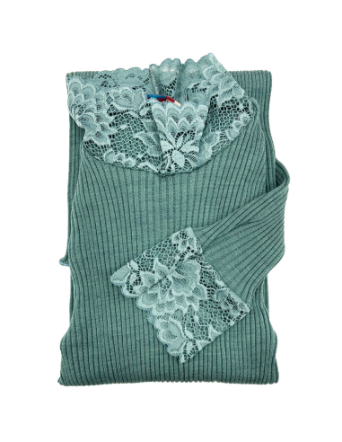 Lupetto Donna Manica Lunga Costina Lana Merinos e Pizzo EGI