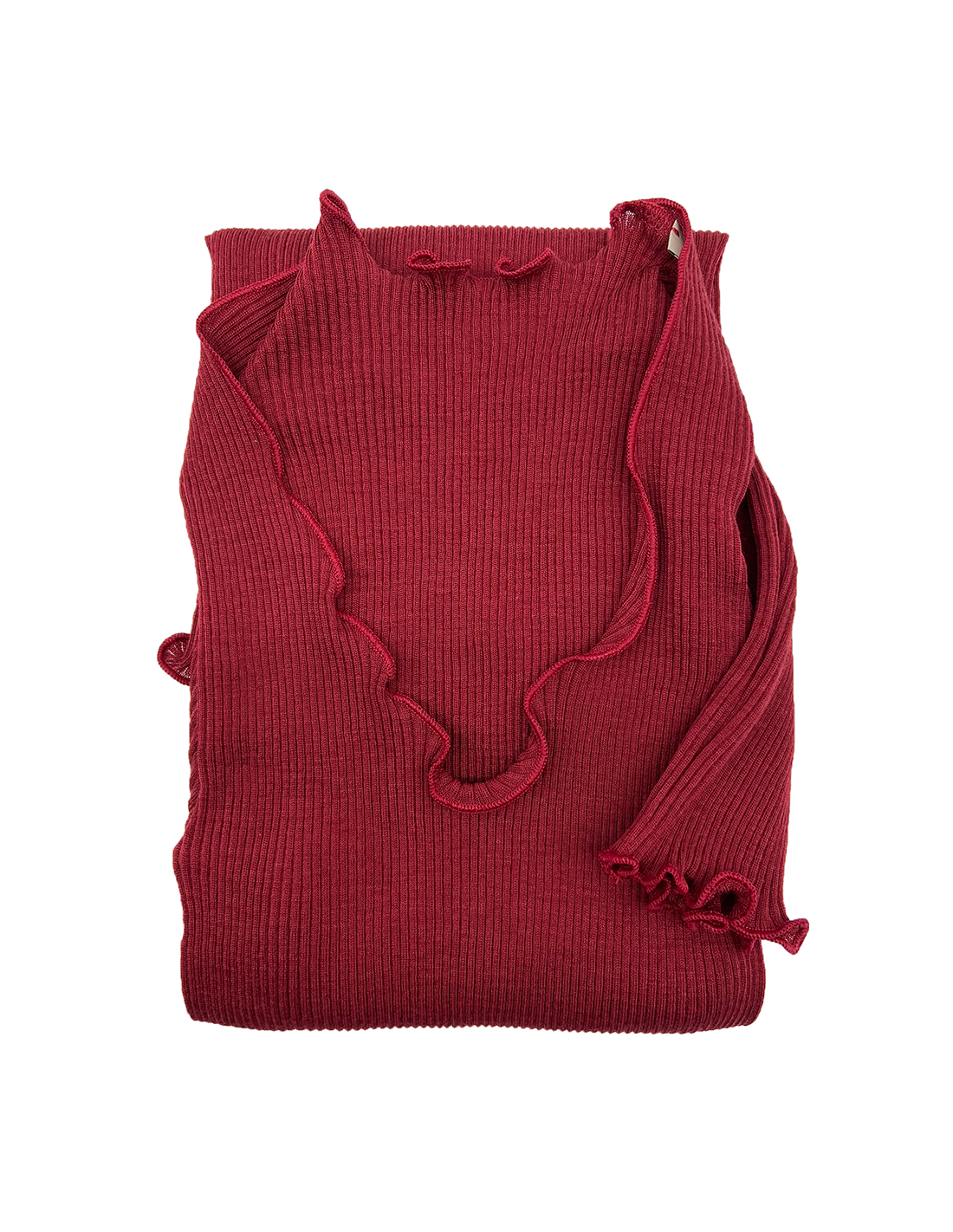 Maglia Donna a Costina in Lana e Seta Manica Lunga Plissè