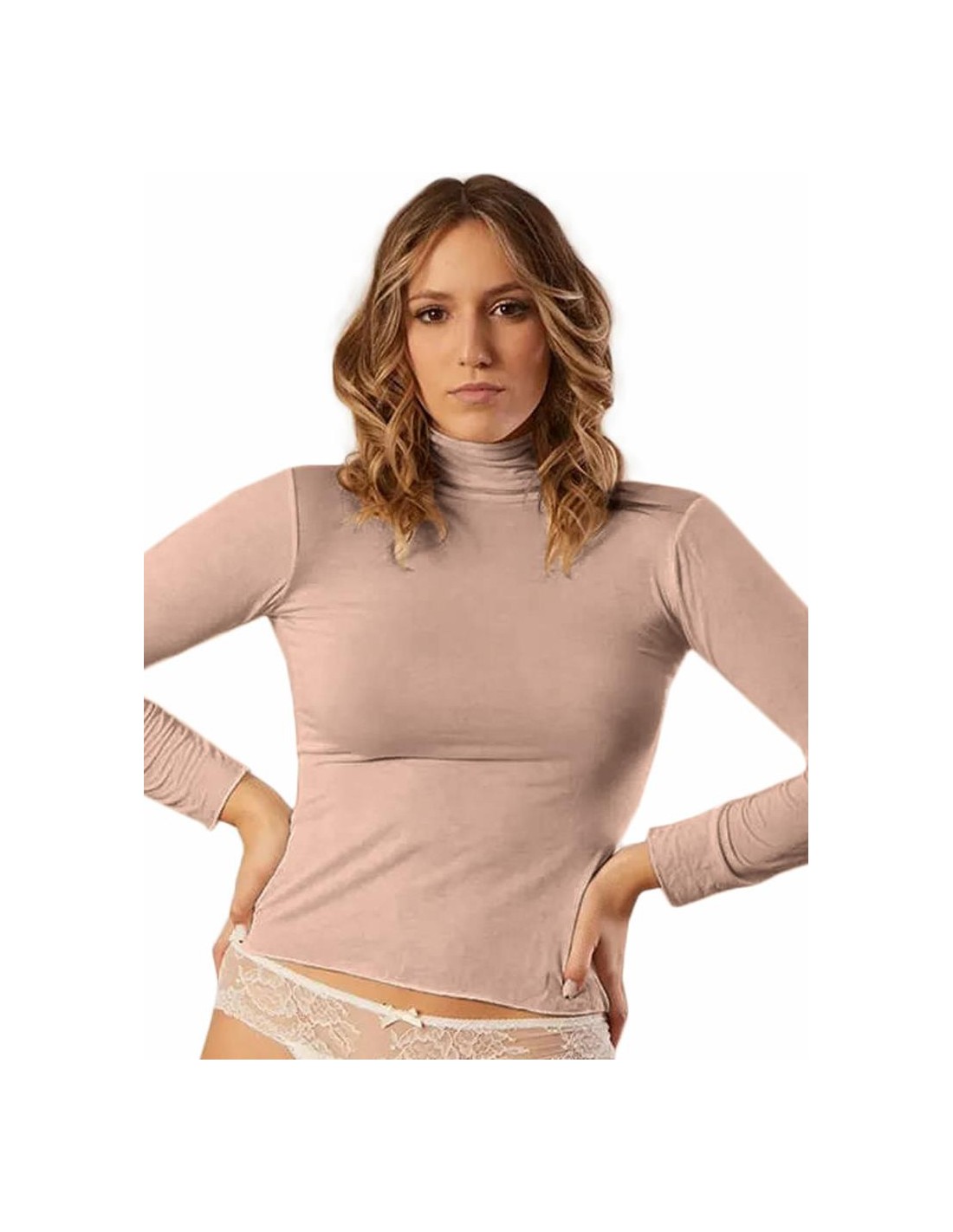 DIVINAMaglia Dolcevita Donna Manica Lunga in Modal Cashmere Extra Light