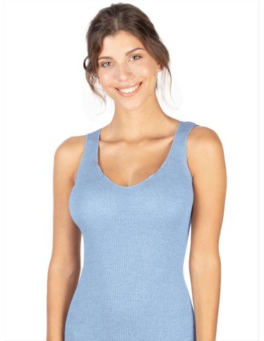Canotta Intima Donna in Lana e Seta a Costina con Spalla Larga e Bordi